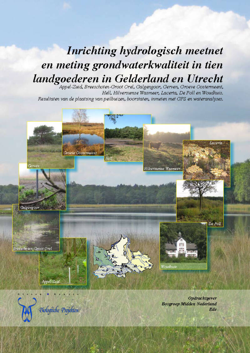 Giesen & Geurts, 2009. Inrichting hydrologische meetnet en meting grondwaterkwaliteit in tien landgoederen in Gelderland en Utrecht. Appel-Zuid, Breeschoten-Groot Orel, Galgengoor, Gerven, Groeve Oostermeent, Hell, Hilversumse Wasmeer, Lacerta, De Poll en Woudhuis. Resultaten van de plaatsing van peilbuizen, boorstaten, inmeten met GPS en wateranalyses. Giesen & Geurts, Ulft/Bosgroep Midden Nederland, Ede.