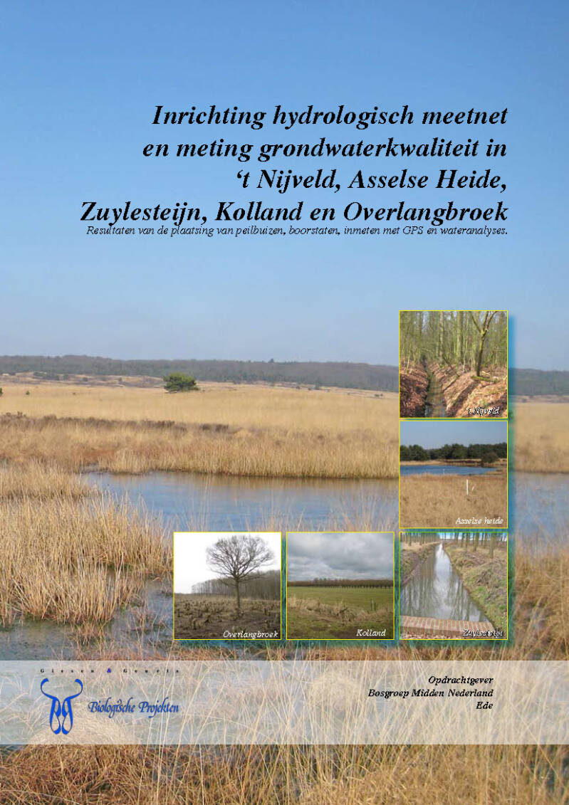 Giesen & Geurts, 2010. Inrichting hydrologische meetnet en meting grondwaterkwaliteit in ‘t Nijveld, Asselse Heide, Zuylesteijn, Kolland en Overlangbroek. Resultaten van de plaatsing van peilbuizen, boorstaten, inmeten met GPS en wateranalyses. Giesen & Geurts, Ulft/Bosgroep Midden Nederland, Ede.