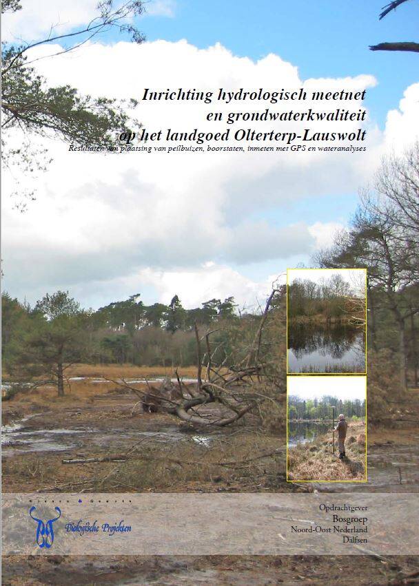 Giesen & Geurts, 2008. Inrichting hydrologische meetnet en grondwaterkwaliteit op het landgoed Olterterp-Lauswolt. Resultaten van plaatsing van peilbuizen, boorstaten, inmeten met GPS en wateranalyses. Giesen & Geurts, Ulft/Bosgroep Noord-Oost Nederland, Dalfsen.